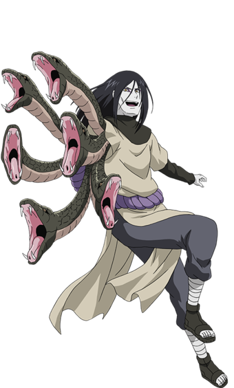 Orochimaru fut le principal antagoniste de la première partie de Naruto et un antagoniste secondaire durant la seconde partie. Il est respecté et surtout très craint par beaucoup de personnes de part sa puissance légendaire, mais également à cause de son apparence de « serpent ». En effet, Orochimaru est l'un des trois Sannin légendaires de Konoha avec Jiraya et Tsunade. Il eût pour maître le Troisième Hokage, Hiruzen Sarutobi.